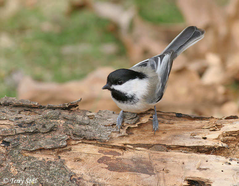 Black-capped Chickadee perched on a fallen log |
